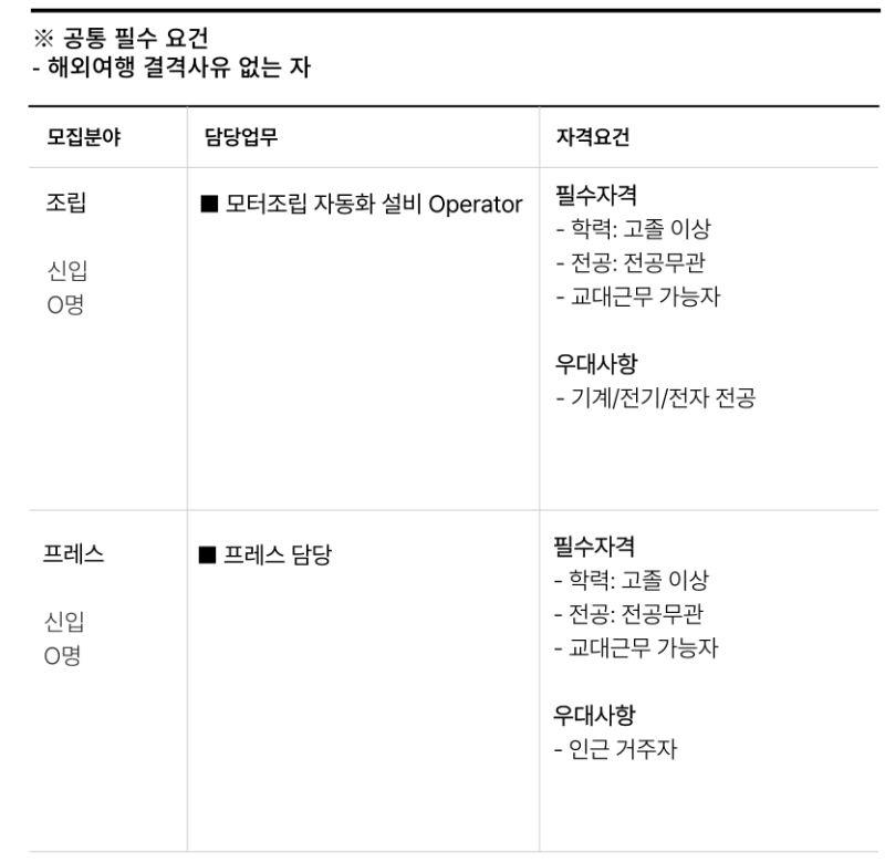포스코모빌리티솔루션 생산직 핵심 업무