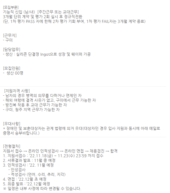SK실트론 자소서: 합격자소서 첨삭 및 채용공고 분석