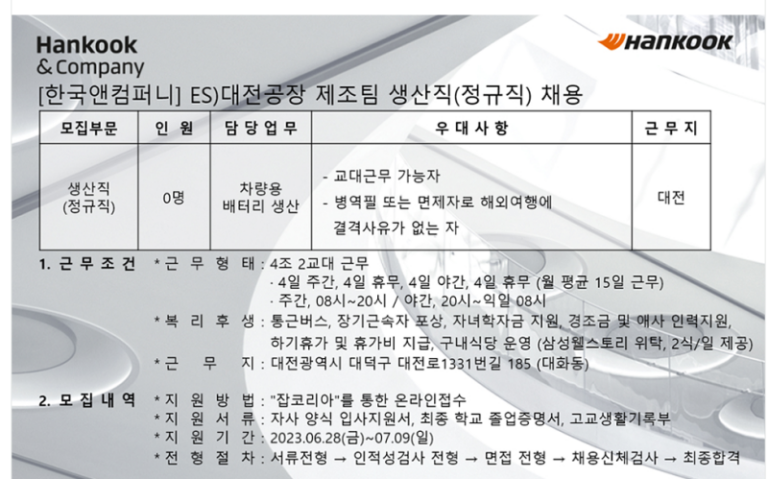 한국앤컴퍼니 자소서: 생산직 합격 첨삭 및 채용공고 분석