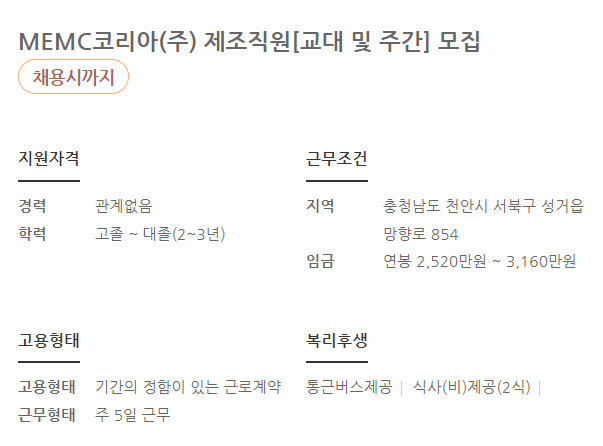 MEMC코리아 자소서: 생산직 합격 비법 & 채용공고 분석